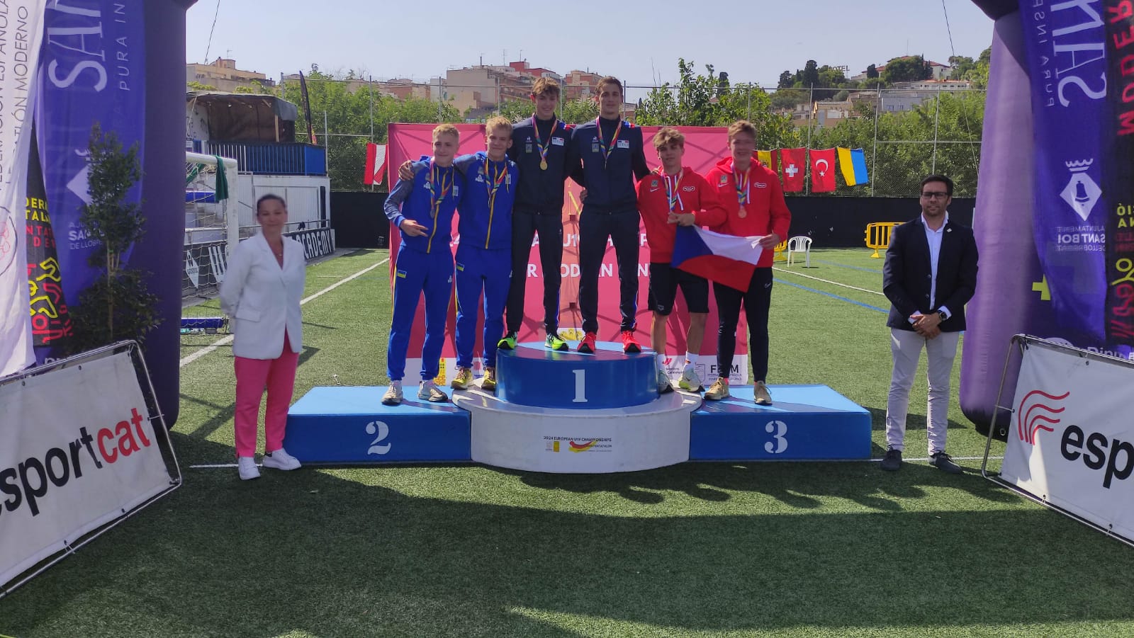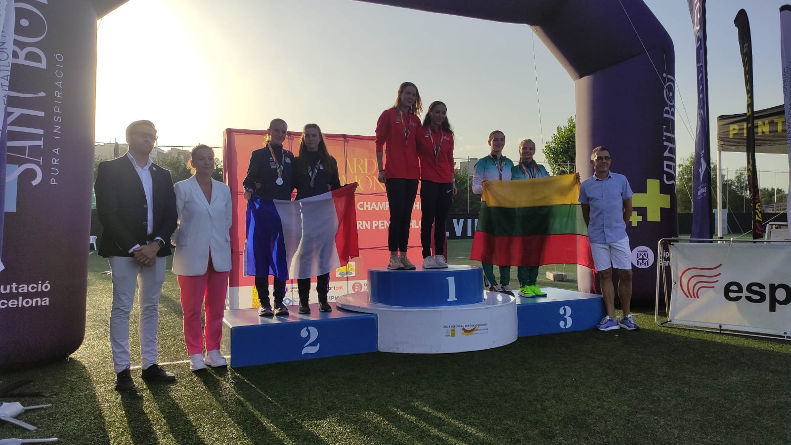 Agathe Chastagner et Alana Sintès ont dominé l”escrime avec 24 succès et 12 revers et le Laser Run en 13’28″89. Elles ont réalisé le 6e temps de l’obstacle et de la natation : 1’14″94 et 2’14″88, ce qui les a éloigné des Tchèques gagnantes de ce relais féminin, 21 points ont séparé les deux équipes au final.