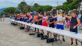 C’est à Argeles-sur-mer que la saison des compétitions françaises 2025-2026 s’est ouverte. Le club avait choisi une formule originale pour entamer l’année: un triathlé enchainé avec natation dans la Méditerranée où la température de l’eau frôlait la température ambiante de 20 degrés en ce début d’automne.